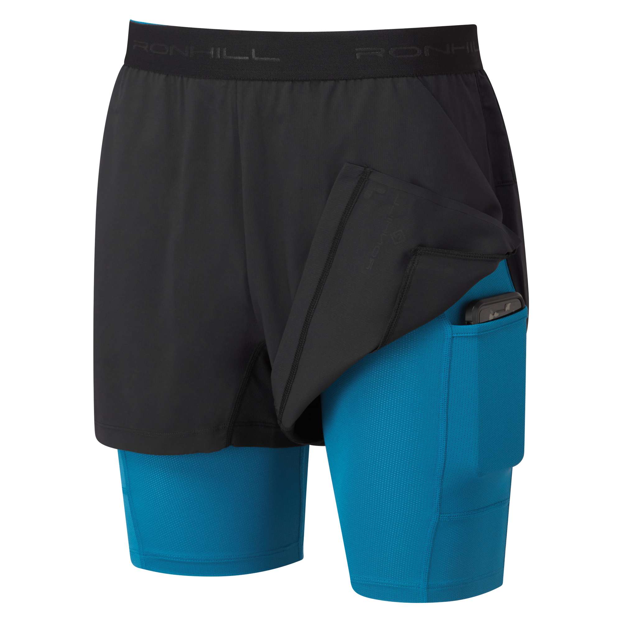 Løpeshorts Herre – Ronhill Ultra Twin Short – Black/Prussian Blue